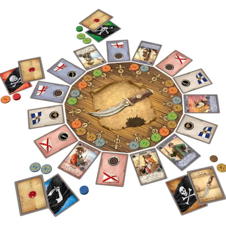 In 15 Men (on a dead man’s chest) a group of dangeorous old sea dogs that will dispute the control of a sea vessel and of its precious treasury.Who will have the better? The brave captain and his faithful companion or the mutineers?15 Men is an intrigue game where the players will play secretely their roles, but the captain that he will try to keep the control of the vessel with help of his guards and his faithful.