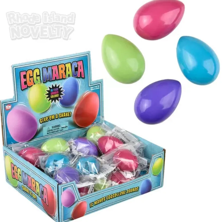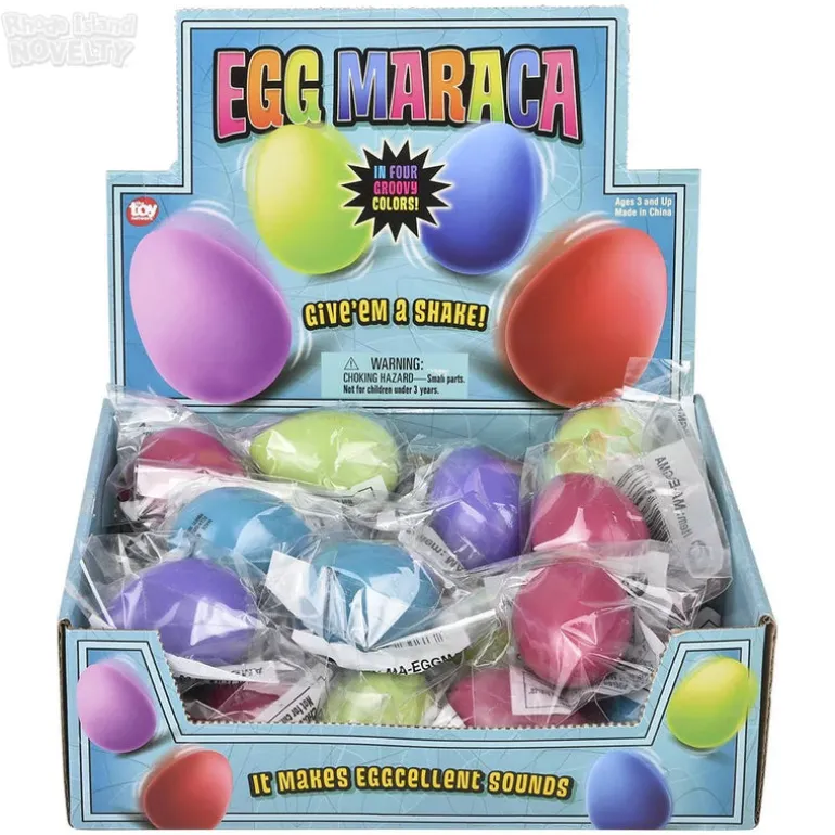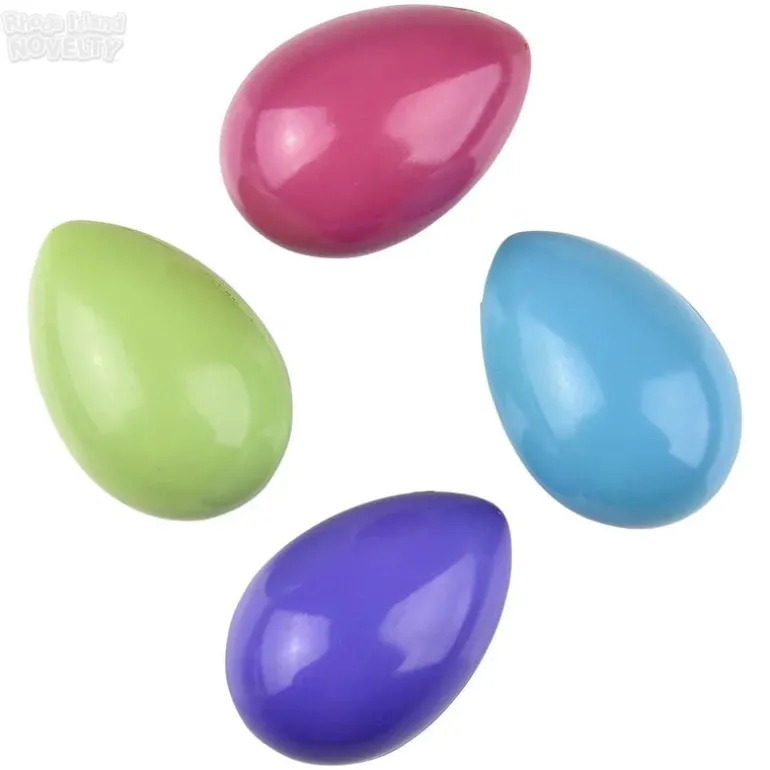 These maracas make egg-cellent sounds! Shake it up with four groovy colors of pink, light green, purple, and blue.