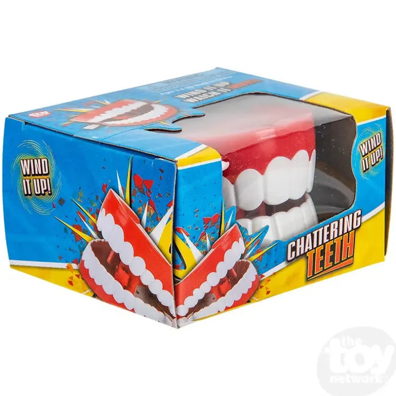 Wind up this classic toy and watch as it chatters across any hard surface. Measuring 2.5-inches, this plastic toy will capture many customers attention to its bright smile.