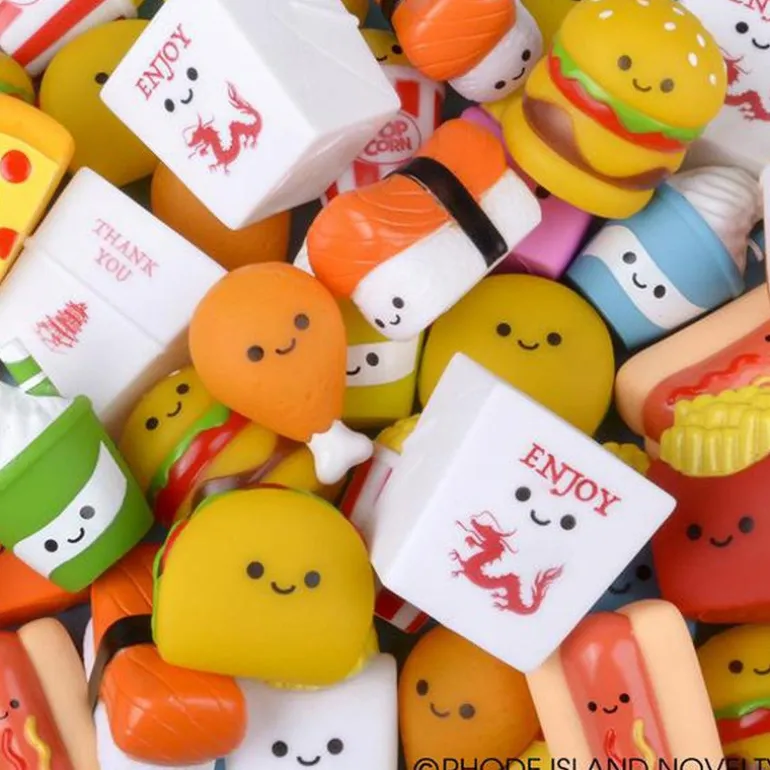 Squish ’em, squeeze ’em, and collect ’em! Collect all of the popular fast food items or use them from gift bags. Just 2″ tall.