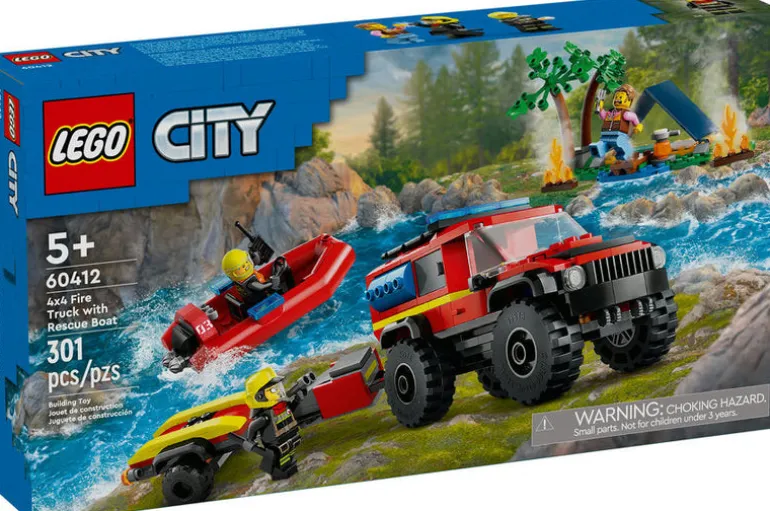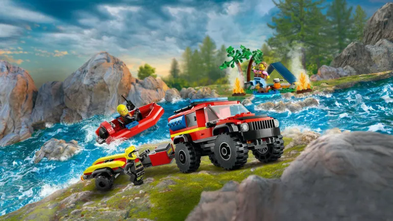 - Toy rescue vehicles playset – Double up the excitement with a fun combo of toy off-road fire rescue vehicles with this LEGO® City 4×4 Fire Truck with Rescue Boat for ages 5 plus