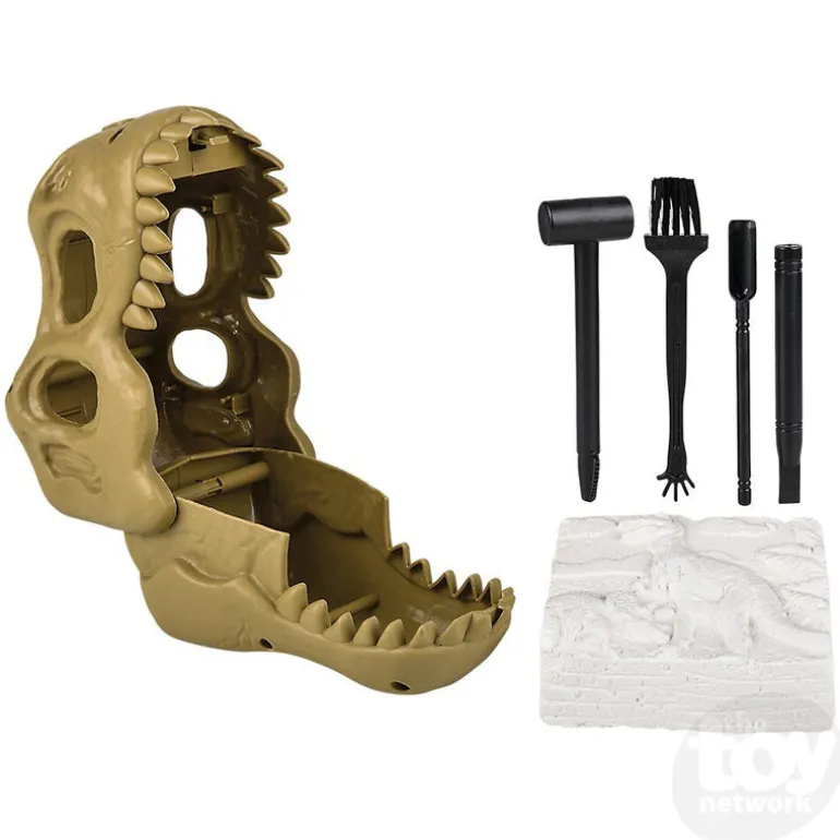 Dig a dinosaur fossil figure with this set out of the included sandstone rock. Assortments may vary. Includes mini digging tools. Each set is in a T-rex skull case.
