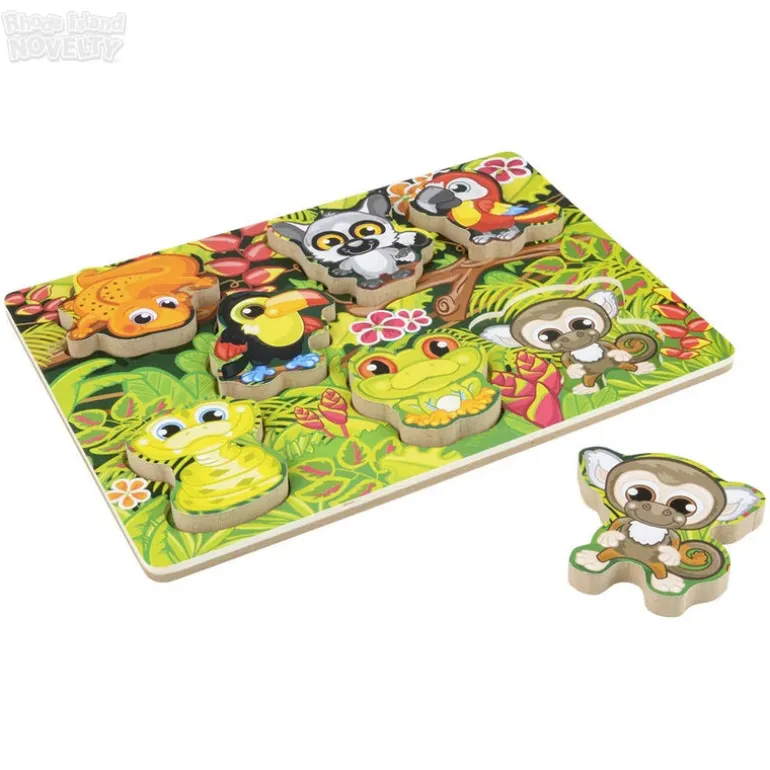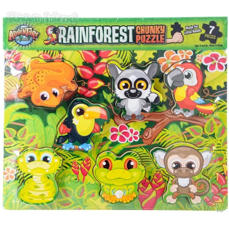 Young ones can learn all about rainforest animals and shapes with this 11.75″ by 10.25″ puzzle. Everyone will be able to learn about different shapes with the different pieces to add to the scene.