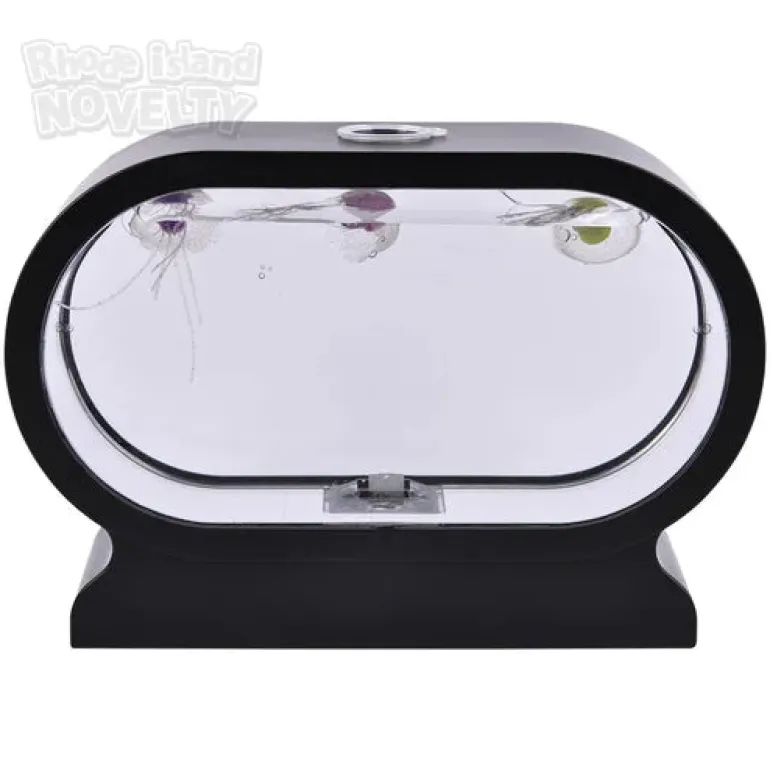 - Turn on this mini aquarium and watch it light up and the jellyfish swim around.