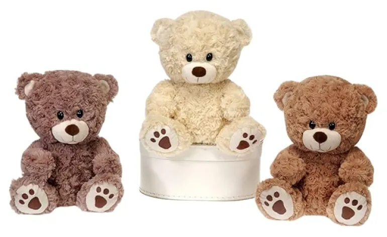 This beautiful bear comes with paw prints, is 9.5″ and available in different colors.
