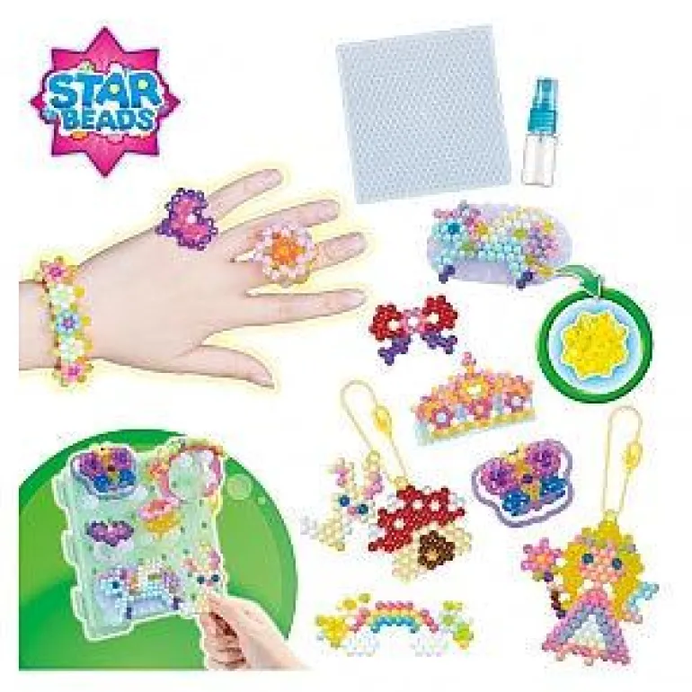 - Includes over 800 solid, jewel and star shaped beads in 16 colors
