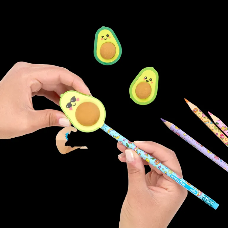 Freshly picked for you, these cute erasers shaped like happy little avocado halves that also can swap their faces and shells like a simple puzzle. And who wouldn’t love an avocado wearing sunglasses for a pencil sharpener? These avocado friends aren’t going on your toast but will add some Avocado Love to homework and schoolwork.