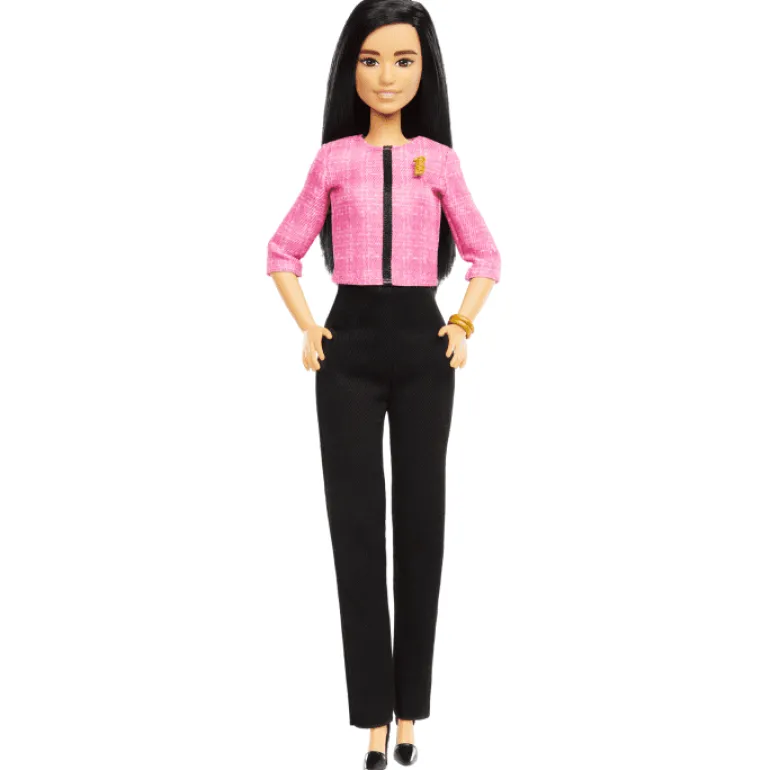 With Barbie Future Leader doll, kids can explore all kinds of leadership roles, all the way to the top! From campaign tales to election events to decision-making moments, Barbie doll is ready to inspire stories around leadership. She wears a polished pink and black outfit accessorized with two golden bracelets and ‘B’ pin. A kid-sized ‘Future Leader’ sticker lets kids role-play the campaign trail with Barbie. Imaginations can play out a world full of storytelling possibilities and career opportunities with this powerful doll, ready to inspire kids to be anything! Doll cannot stand alone.