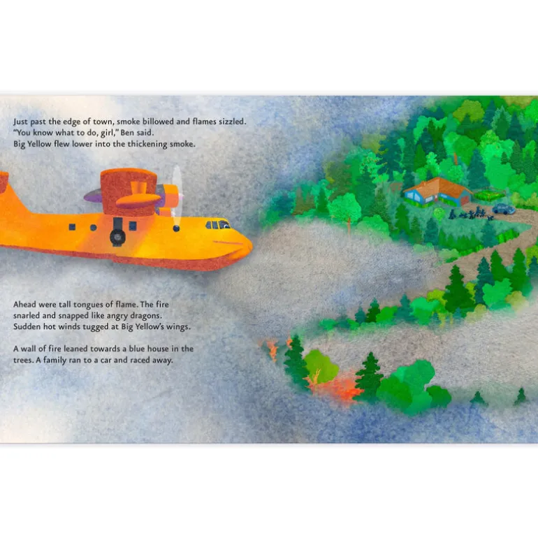 Big Yellow brings to life the firefighting aircraft that take to the skies and douse fires from above. This book highlights the water-bombing planes CL-215 and CL-415. This aircraft was built specifically for fighting forest fires from the sky. The book focuses on the capabilities of the aircraft while encouraging self-esteem and the feeling of belonging. There is a non-fiction section with lots of interesting details about the plane, along with some links for those inspired readers who wish to learn more.