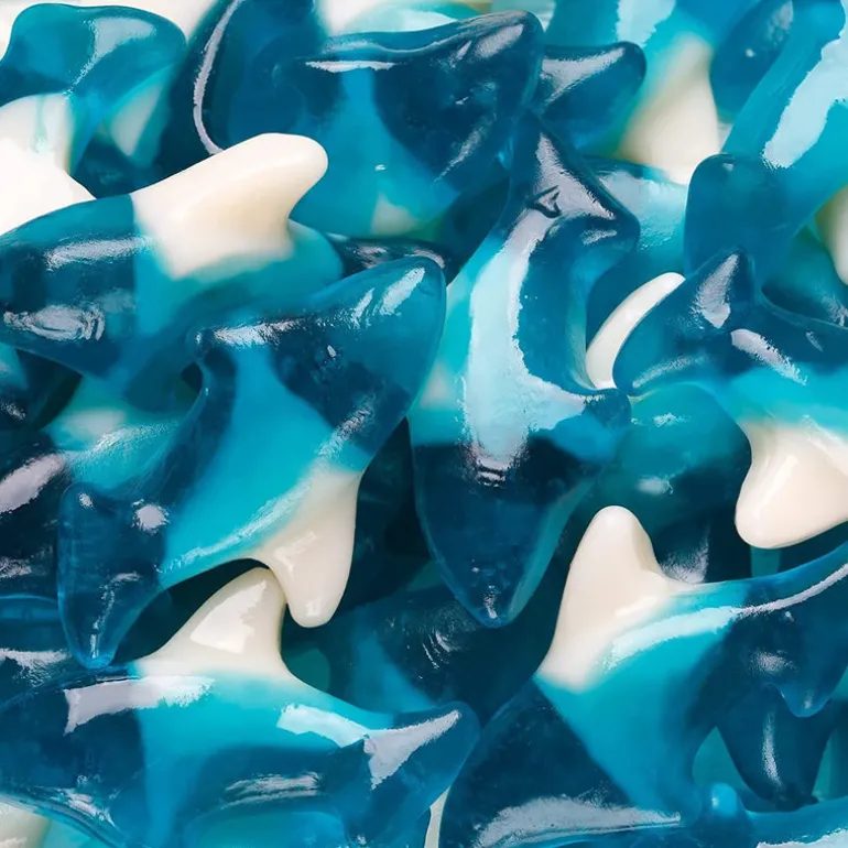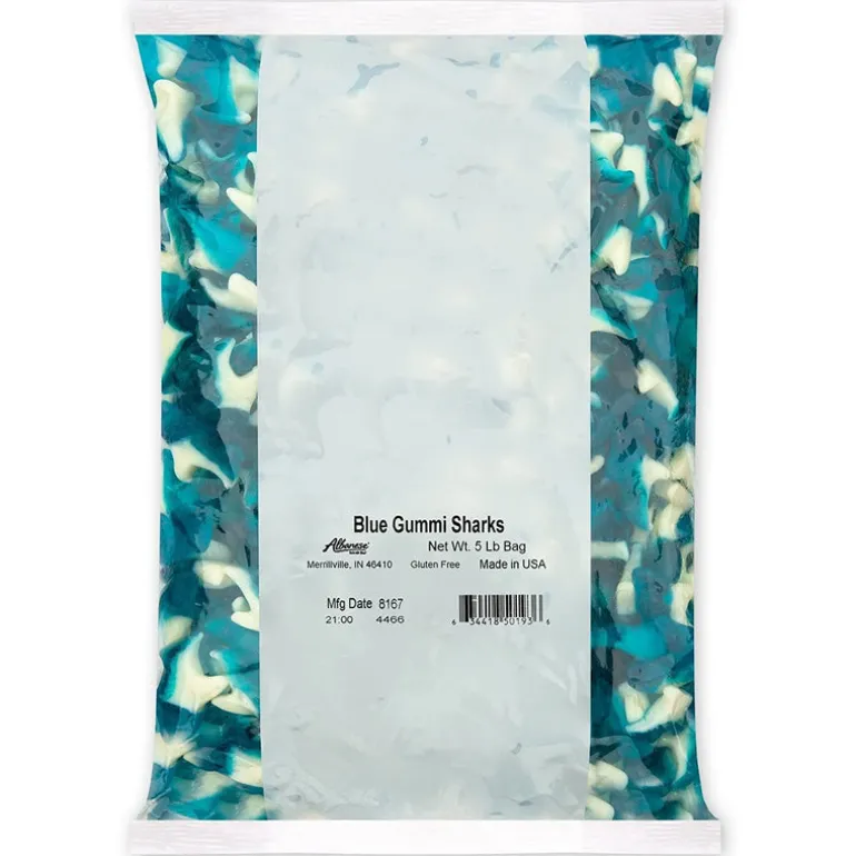 - Stock up with a 5-pound bag of Blue Gummi Sharks.