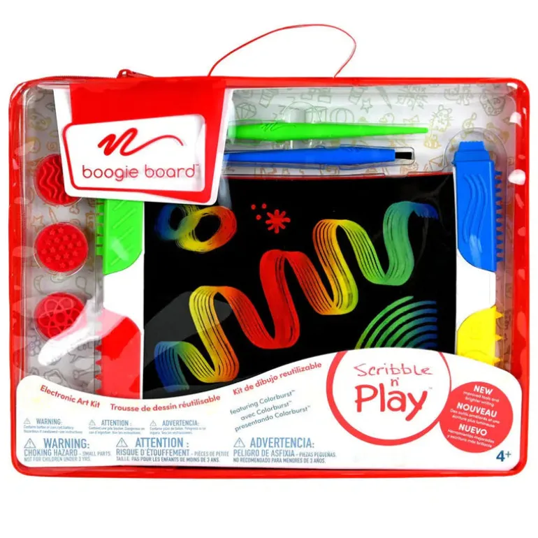 The four included Stylus Crayons feature sixteen uniquely textured tips and edges, an ingenious way for kids to bring imagination to life. When it’s time to create something new, just hit the erase button and Scribble ‘n Play starts fresh in a flash, again and again!