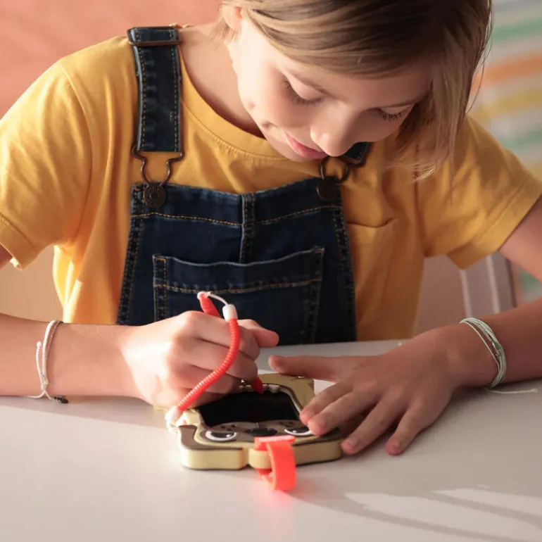 Kids can doodle with anything, including the attached stylus or even their fingernail. With the push of the pals nose, the doodle board instantly clears itself. There are no erase marks or wiping needed!