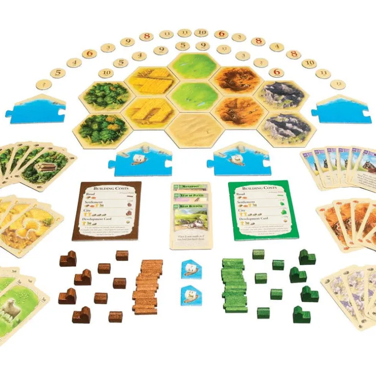 Allows you to add up to two more opponents to The Settlers of Catan. The only change in the rules is that there is a building round at the end of each turn in which any player can build.