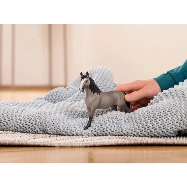The Selle Français mare is on the look-out for an adventure today. Maybe someone wants to ride out with her? Then she could gallop across meadows and jump over fallen trees. Or even better, she could take part in a show jumping competition! That’s her favorite thing of all. With her long, strong hind legs, she easily can overcome even the highest obstacles. No wonder she’s already won so many prizes!