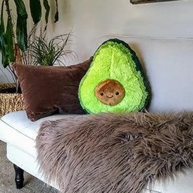 Avocados are extra!They are extra-satisfying when spread on a piece of toast! They make an extra-yummy dip for your chips! They’re also extra-easy to tell when they’re ripe!This particular Avocado has extra-extra! Extra cuddles compared to your average avocado… and extra-avocadoness compared to your average giant plush!