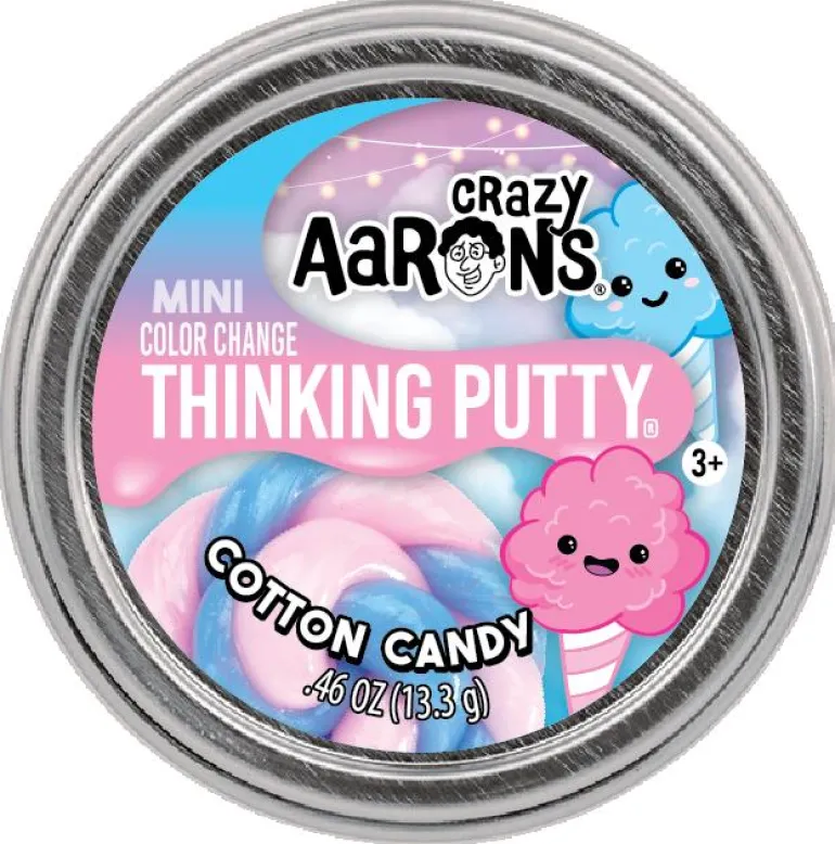 Have you ever been to a summer fair? They have rides, games where you can win prizes, and they ALWAYS have a cotton candy machine! You usually must choose between a pink or blue cotton candy, but with Cotton Candy Mini Thinking Putty, you can make both! This putty starts off as blue and gradually warms to pink!