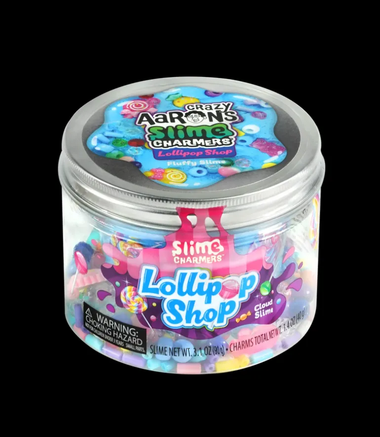 You deserve something sweet today and you’ll find in the new Crazy Aaron’s® Slime Charmers™ Lollipop Shop. This fluffy blue slime will keep you wanting to come back for more. With the sweetest charms on earth to mix and match into this soft, fluffy slime you will create your own candy shop experience. The slime will expand and stretch as you play, mix, and create. So be creative and satisfy your sweet tooth with Slime Charmers™ Lollipop Shop.