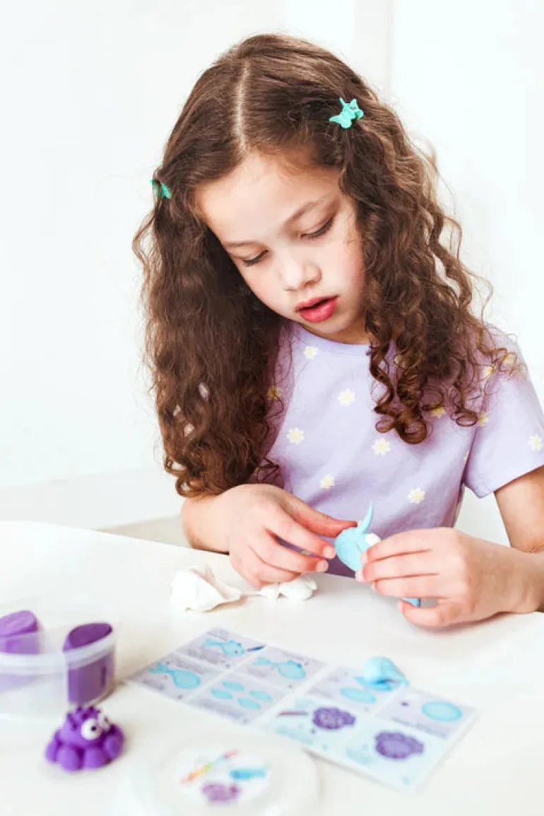 Oh, the creatibilities of learning how to sculpt! This air dry clay is a must-have set for those kiddos who enjoy tactile play! Everything they need to create two cutie-pie characters is in this mini clay kit, including four different colors of super soft, non-toxic air dry clay, instructions for molding a silly octopus and a wonderful whale, as well as a reusable tub. Watch as your child creates these adorable buddies of the sea!
