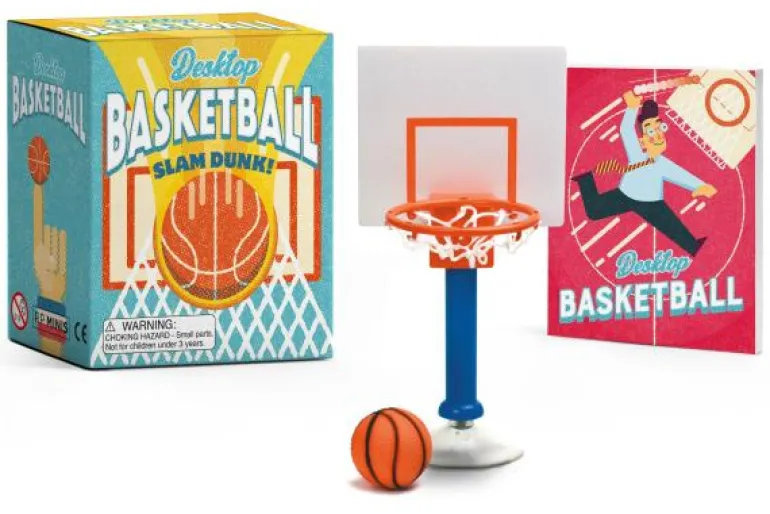 Master this one-of-a-kind, miniature basketball game from the comfort of your own desk! Kit includes:Easy-to-assemble basketball hoop with backboard and suction cup base that attaches to a desk or tabletop surface. Measures approximately 5″ high when assembled.Mini rubber basketball32-page rule book on Desktop Basketball