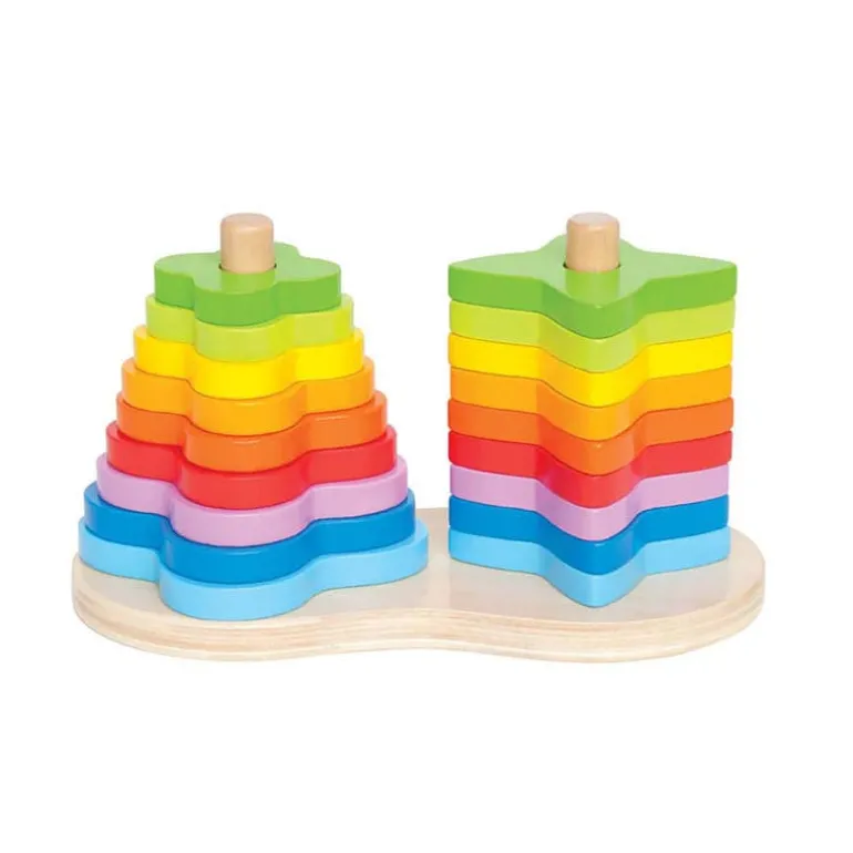 Two shapes and nine colors create endless possibilities for stacking and sorting.