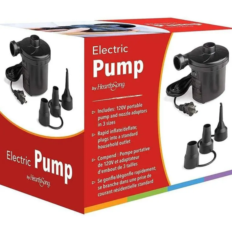 Inflatables are big, sometimes really big! Save energy and time by inflating pool floats, outdoor toys, balls, camping gear, and more with our Portable Lightweight Electric Pump. This versatile tool has three nozzle attachments and an inflation and deflation port. Bonus: the easy-to-use electric pump also deflates your inflatables effortlessly, making storage and transportation easy. A great add-on when purchasing any inflatable toy or cushion, and perfect to have on hand for trips to the park or pool or other outdoor adventures.