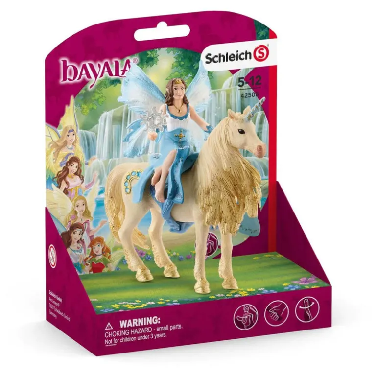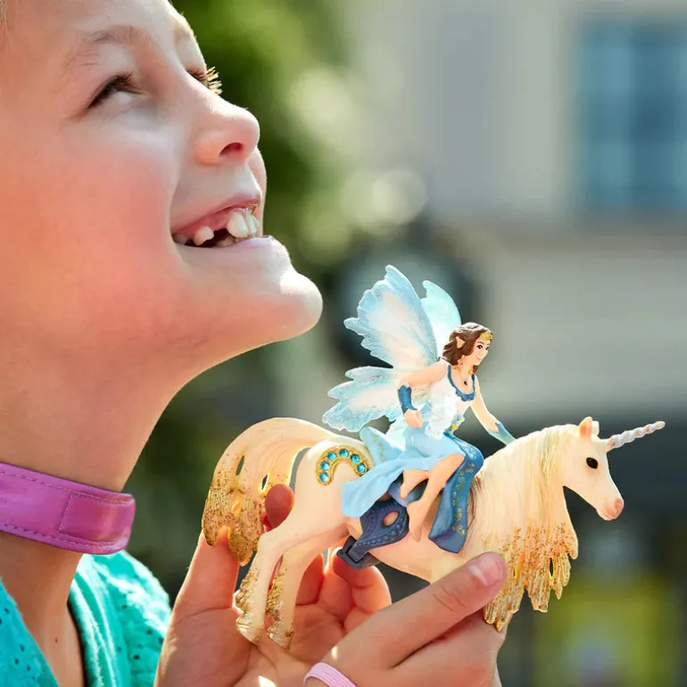 Crown princess Eyela loves to ride on her golden unicorn through the forests of BAYALA®. She had a special saddle made for this, so that she won’t fall from the unicorn’s back. Explore nature together in BAYALA®!