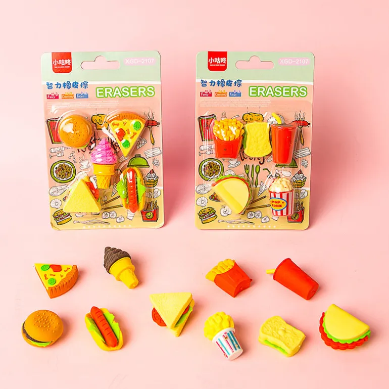 Fast Food Series blister card of erasers! Perfect for playtime, homework and collectors. Great stocking stuffers, valentine favors or basket filler.