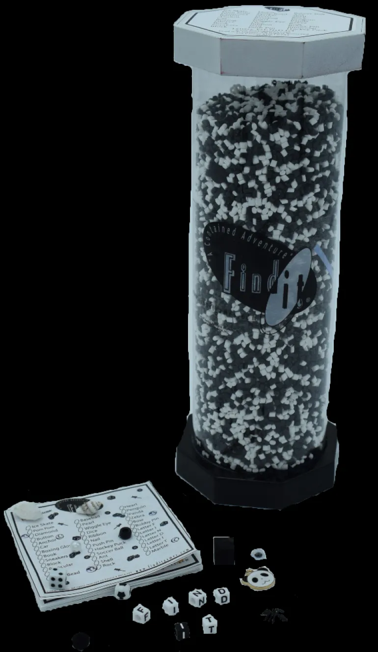 Find it “Tuxedo Version” is the first in a series of Ultimate Find it® Games. The Black and white beads as well as black and white items to find will make this an ultimate challenge for all. This will make the perfect gift for those hard to shop for people and will definitely offer a challenge to find all the items. Each game has more than 40 items including a dice, soccer ball, zebra, ice skate, bobby pin, push pin, block are just a few of the hidden objects and of course a real US Penny. Check-off pad included.