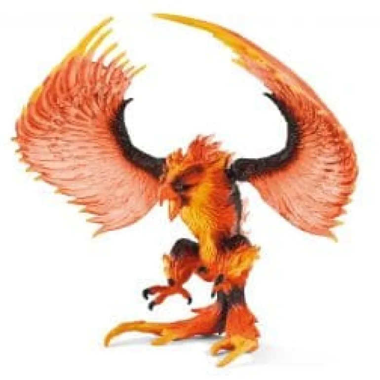 The fire eagle by Schleich® Eldrador® Creatures circles high above the volcanoes. The dreaded bird of prey has the perfect view from up there: As soon as an enemy enters the lava world, he prepares to dive with his huge, movable wings. The fire eagle then grabs the intruder with his sharp claws, and pecks it with his beak. Ouch!His watchful eyes don’t miss a thing: High above the volcanoes of the lava world, the fire eagle by Schleich® Eldrador® Creatures circles majestically through the air. His movable wings ensure that the skillful bird has plenty of propulsive force and easily masters complicated flight manoeuvres. The fire eagle perceives even the smallest movements on the ground – and if it’s an intruder, the bird of prey doesn’t hesitate for long: He spans his movable, transparent wings and dives toward the enemy. He pulls a glowing, blazing tail behind him, making him look like a falling comet. The fire eagle has razor-sharp claws, which he mercilessly grips with. Another weapon he uses in attacks is his curved, pointed beak. As a crowning glory, the fire eagle creates a massive firestorm with his wings, which simply sweeps his enemies away.