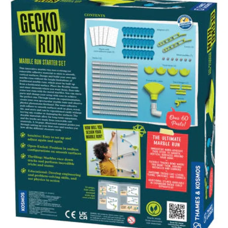 The Gecko Run Starter Set includes everything you need to zip, zag, bounce, skip, and hurdle into an awesome engineering adventure. A 16-page illustrated manual guides you through setting up your first runs and teaches you how all the different elements work. Witness physics in action! Use independently or combine with any of the expansion packs.