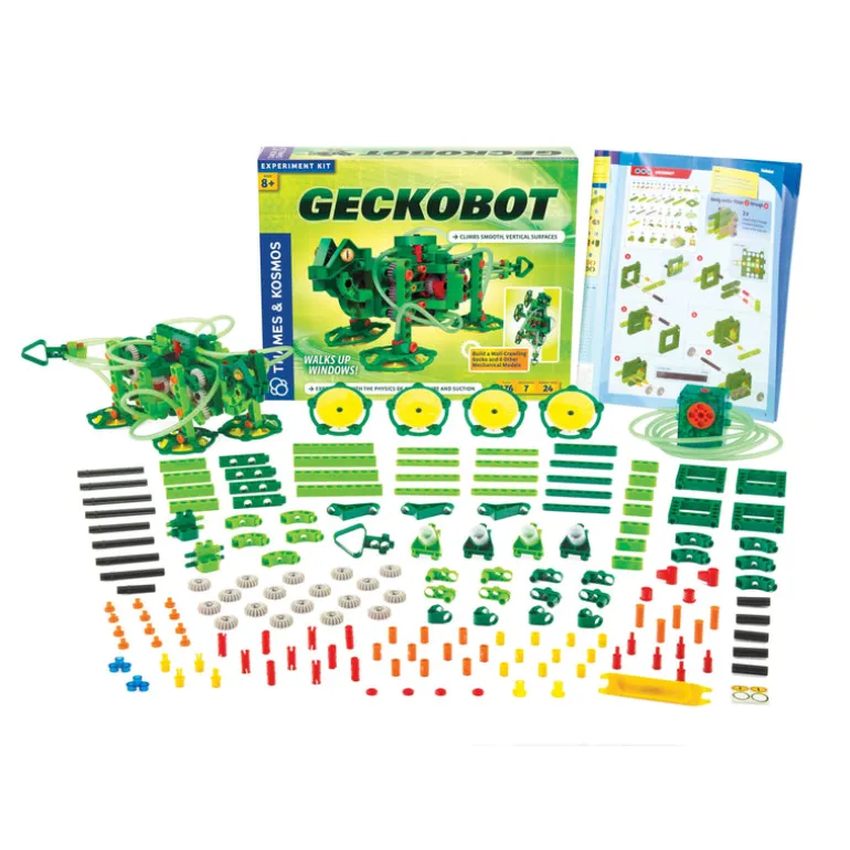 Buy the Thames and Kosmos Geckobot Experiment Kit at Michaels. com. Teach your kids the basics of physics and air suction with this Thames and Kosmos experiment kit. Teach your kids the basics of physics and air suction with this Thames and Kosmos experiment kit. The battery-operated Geckobot has a motorized air suction system that allows it to climb up and down on smooth surfaces like glass, plastic and glossy laminates. The motor-driven system of this gecko enables side-to-side head and tail movements. Build interesting models and conduct experiments to teach mechanical physics to your little scientists. Details: 14.6″ x 11.5″ x 3.1″ Requires 2 AAA batteries For ages 8 and up Contents: