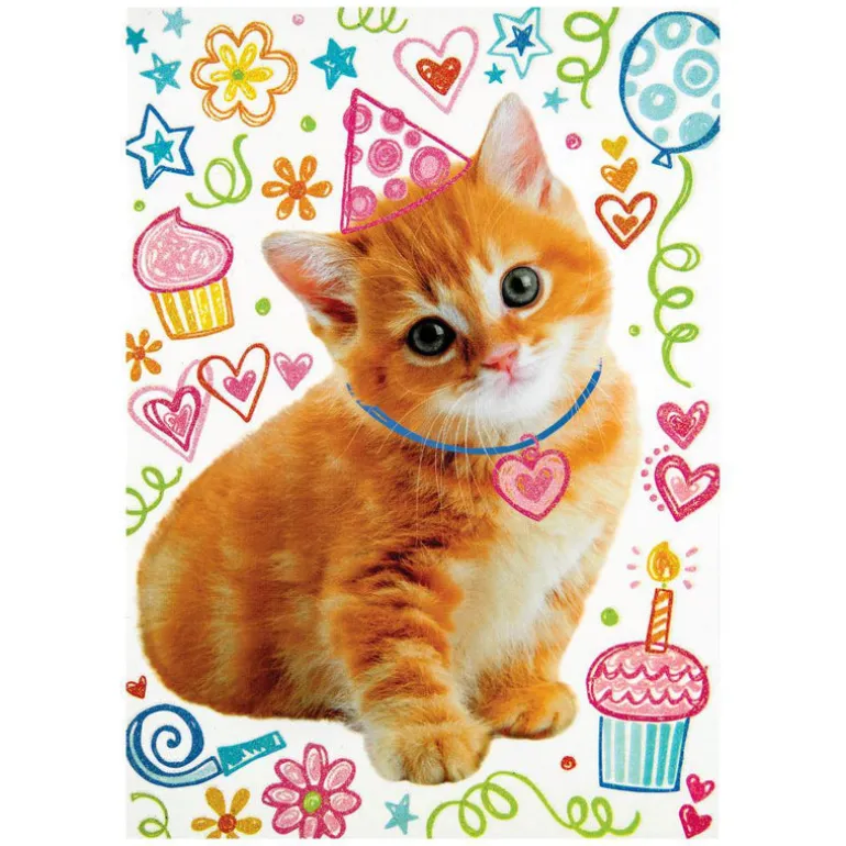 Glitter Kitty Doodle Birthday Card