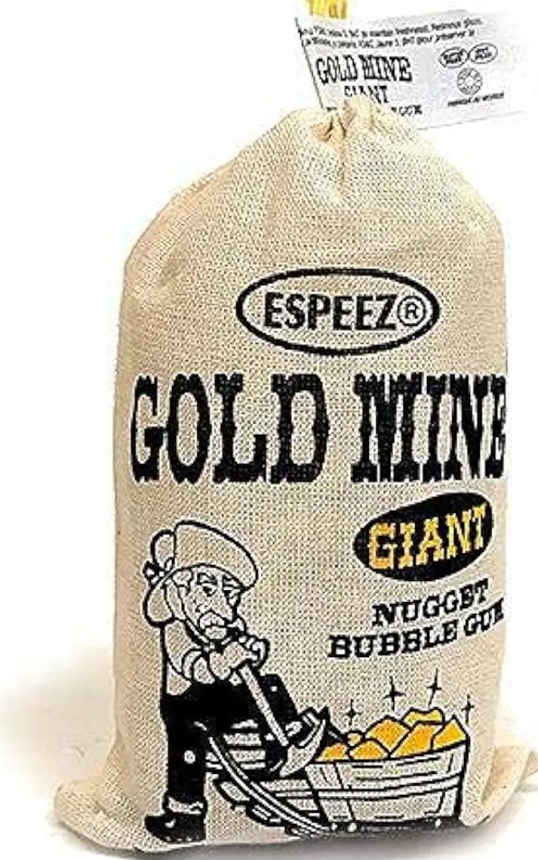 “There is gold in dem hills!” Gold nugget chewing gum that is. Classic candy coated chewing gum.
