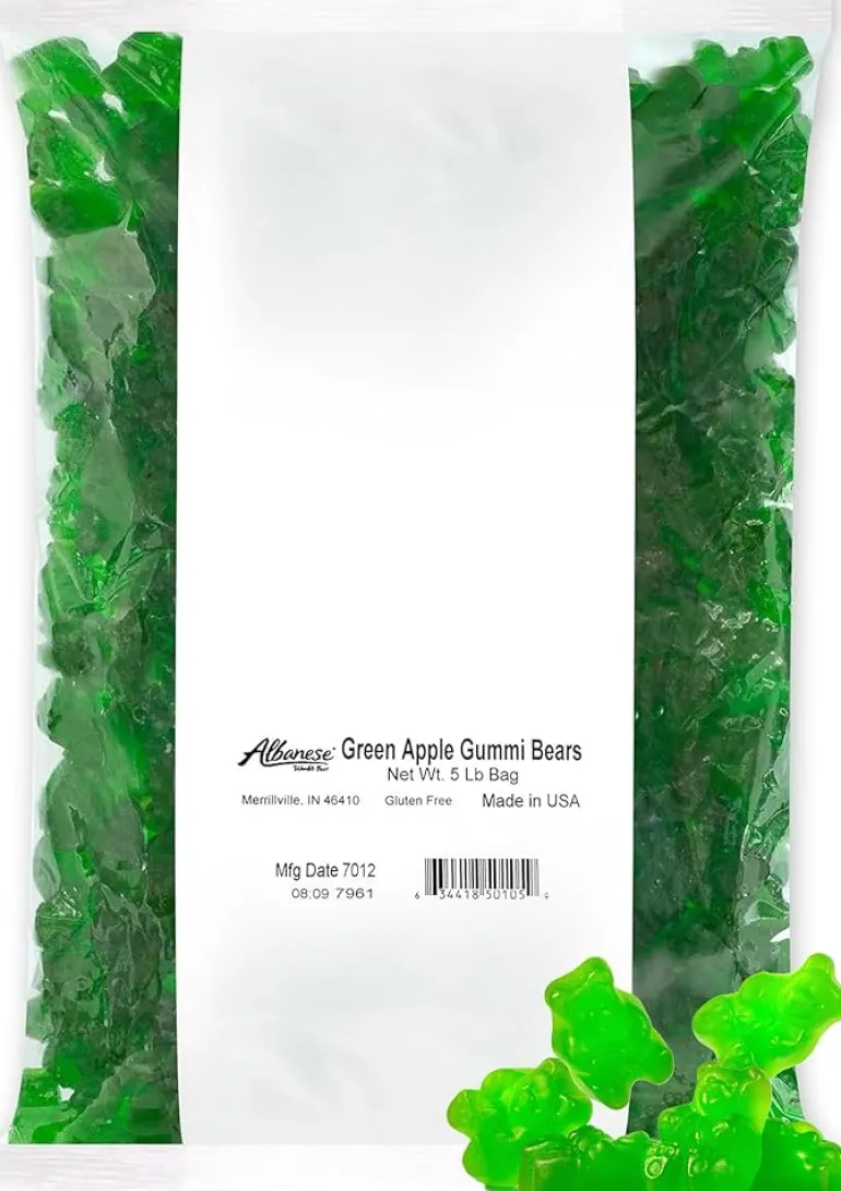 You know what they say an apple a day … Our Green Apple Gummi Bears taste just like the real thing – sweet and tart with a soft gummi chew that is uniquely Albanese.