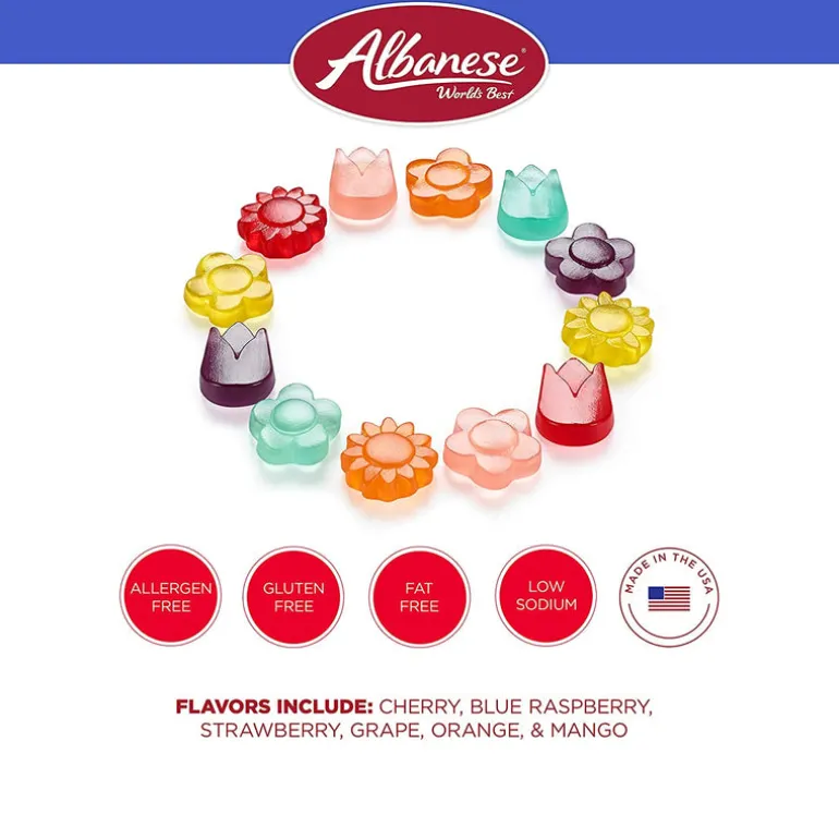 - STOCK UP THE FLAVOR: Whether you like them sweet, sour, big or small, Albanese gummi candies burst with fresh fruit flavors & you can stock up with a bulk pack of your favorite flavor. Delight your tastebuds with Albanese gummy worms, gummy bears & more!