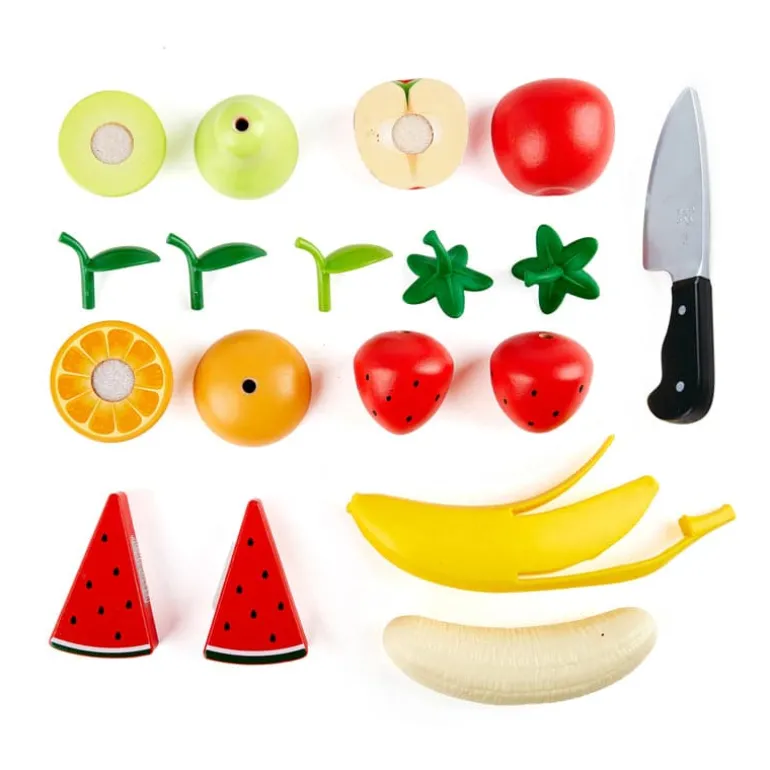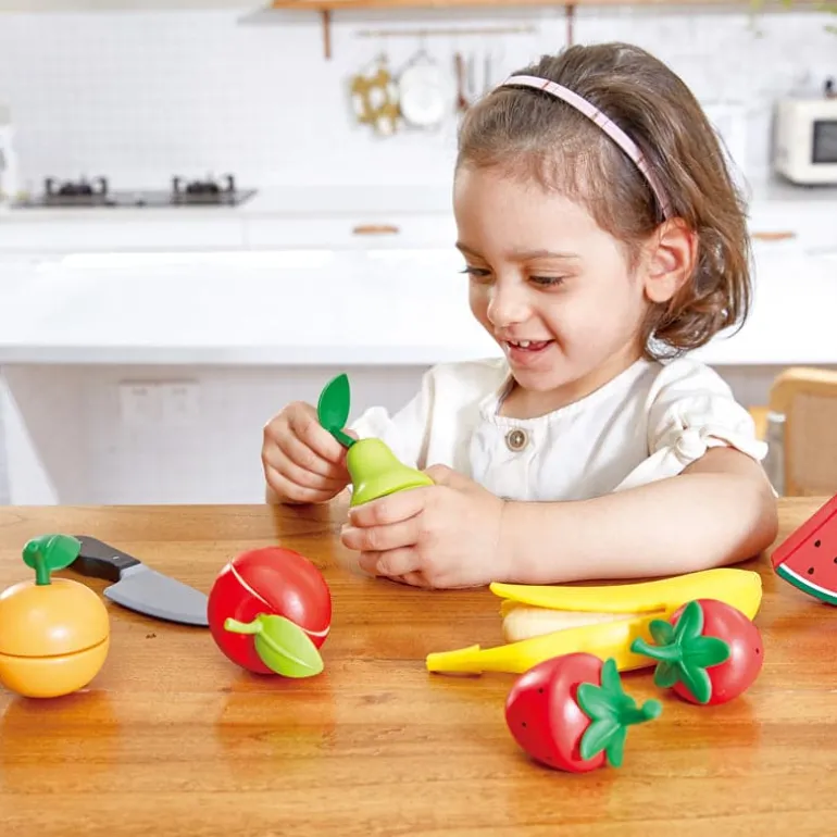 Get ready for the most important meal of the day with this fun breakfast set. Includes yoghurt with opening lid, milk and a bottle of orange juice which clicks when you turn the cap. Also includes one egg with eggcup, a bowl of oatmeal with a spoon, two slices of toast and one slice each of tomato, lettuce and cheese.