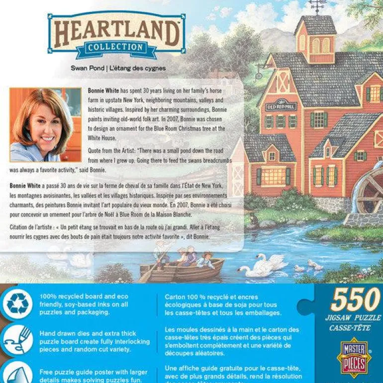 These MasterPieces 24″ x 18″ 550PC Heartland puzzles are created by the talented Bonnie White. Inspired by the charming scenery on her family’s farm in upstate New York, as well as neighboring mountains, valleys, and historic villages, Bonnie White creates beautiful landscapes of old-world folk art and culture.