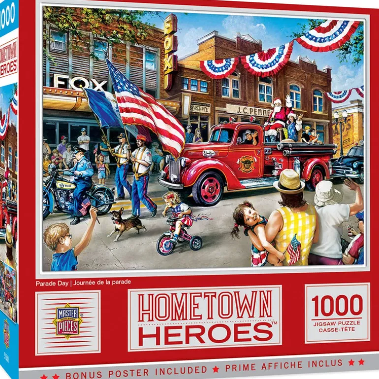 This MasterPieces 19.25″ x 26.75″ 1000pc Hometown Heroes Puzzle is the perfect way to support our American heroes. Painted by the detail-oriented Dan Hatala, the patriotic Hometown Heroes line celebrates all the men and women who defend our freedom and ensure our safety, including fire fighters, police officers, and soldiers in the US Army.