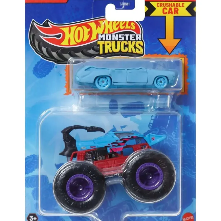 Commence the smashing and crashing with a Hot Wheels Monster Trucks 1:64 scale die-cast truck and bonus 1:64 scale die-cast car in matching decos. Kids can recreate a favorite sequence from Monster Trucks Live or invent new stories featuring favorite characters. A variety of pairings are available highlighting the big wheels and big personalities fans love — they will want them all!