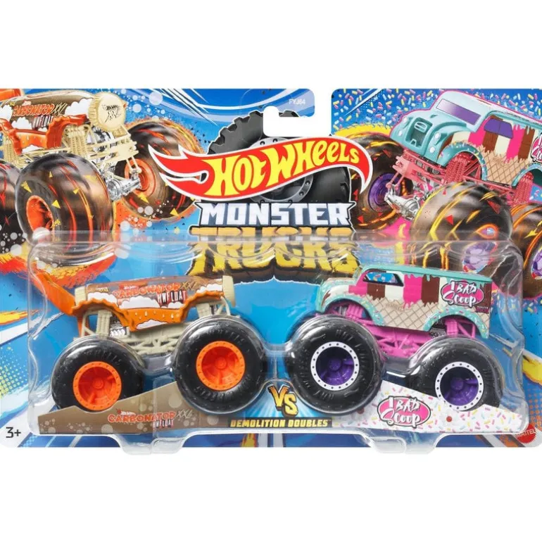 - Collection of rivals in a 2-pack of 1:64 Scale Hot Wheels® Monster Trucks (each sold separately)!