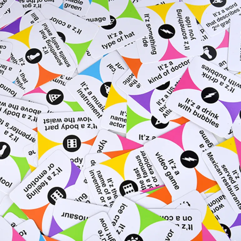 Quick, name a drink with bubbles that starts with “C.” If you said, “Coke”, “Champagne”, or “CoIa,” you pretty much know how to play. ITZI is super-simple to learn, and super-fast to play! Be the first to match the right letter cards to the right clue cards. Plus, there are lots of ways to play with fun, colorful twists. ITZI… It’z simple! It’z fast! It’z letters! It’z laughs!