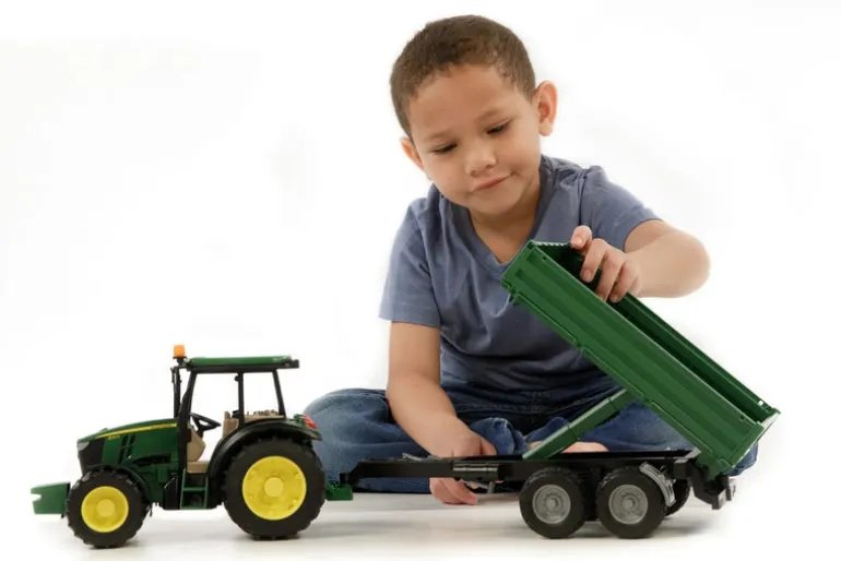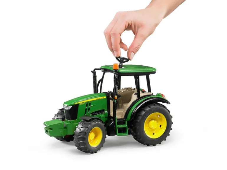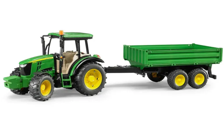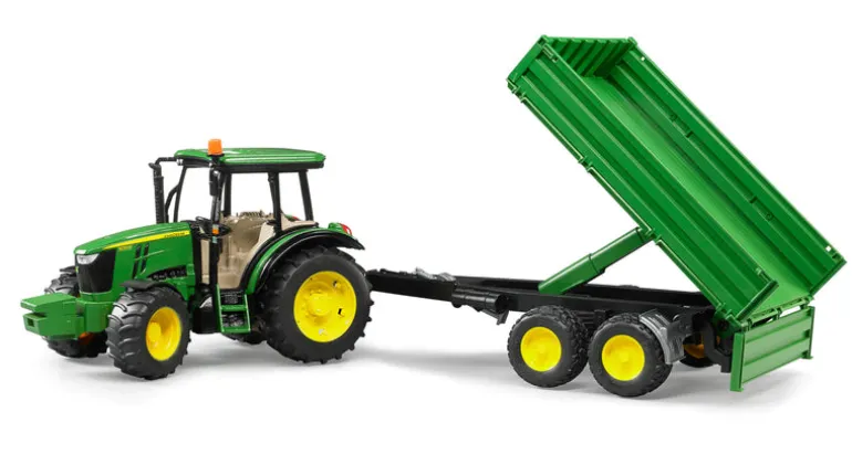 The John Deere 5115M is the star of the compact tractor class on the farm. This trailer is equipped with many fun features including fold-out container, fold-out side gates, drawbar coupling and tread tires. An additional drag link is intended to facilitate steering through the roof hatch and if it is not desired, it can be stored in the vehicle underbody.