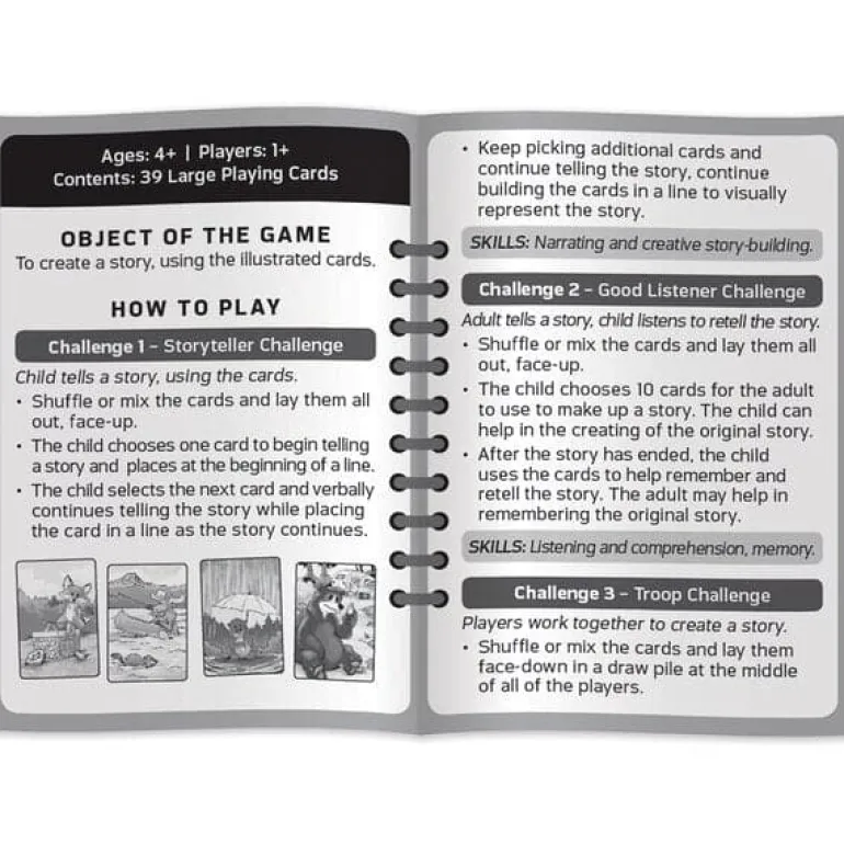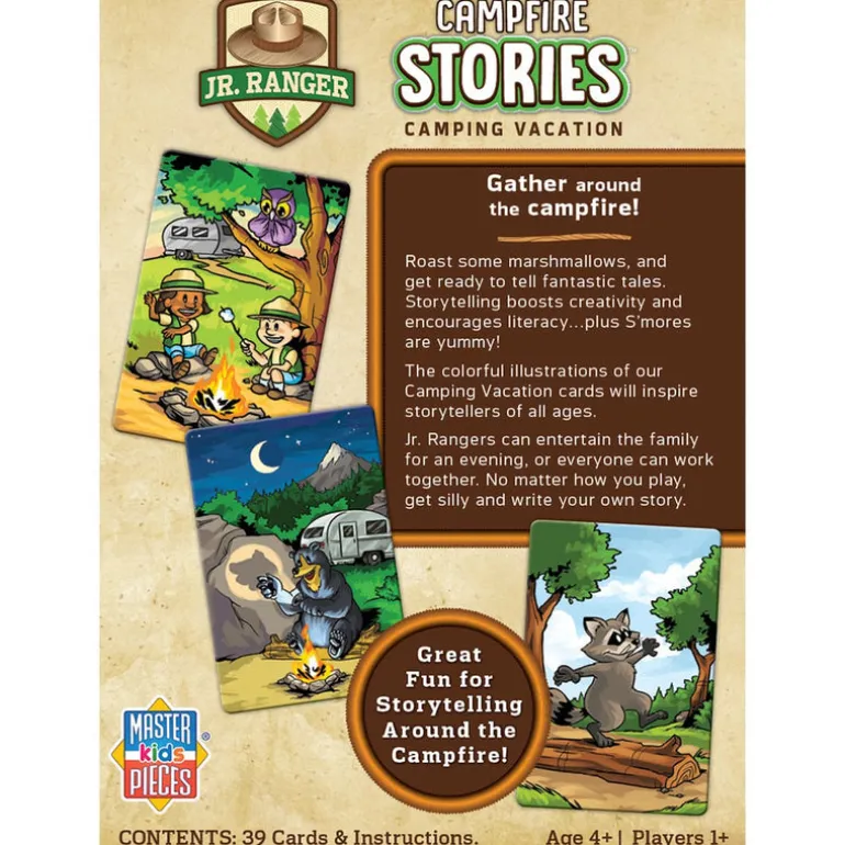 Gather around the campfire! Roast some marshmallows, and get ready to tell fantastic tales. Storytelling boosts creativity and encourages literacy…plus S’mores are yummy! The colorful illustrations of our Camping Vacation cards will inspire storytellers of all ages. Kids can entertain the family for an evening, or everyone can work together. No matter how you play, get silly and write your own story. Includes 39 playing cards and instructions.