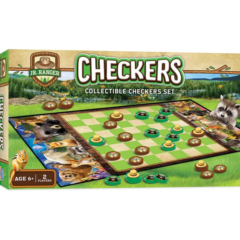 This National Parks Checkers Game is the classic game of checkers where the king wears a Ranger Hat! The National Parks checkers game includes 24 green and orange animal checkers pieces, 8 Ranger Hat king pieces, a 13″ x 21.375″ National Parks wildlife game board, 1 sticker sheet, and instructions.