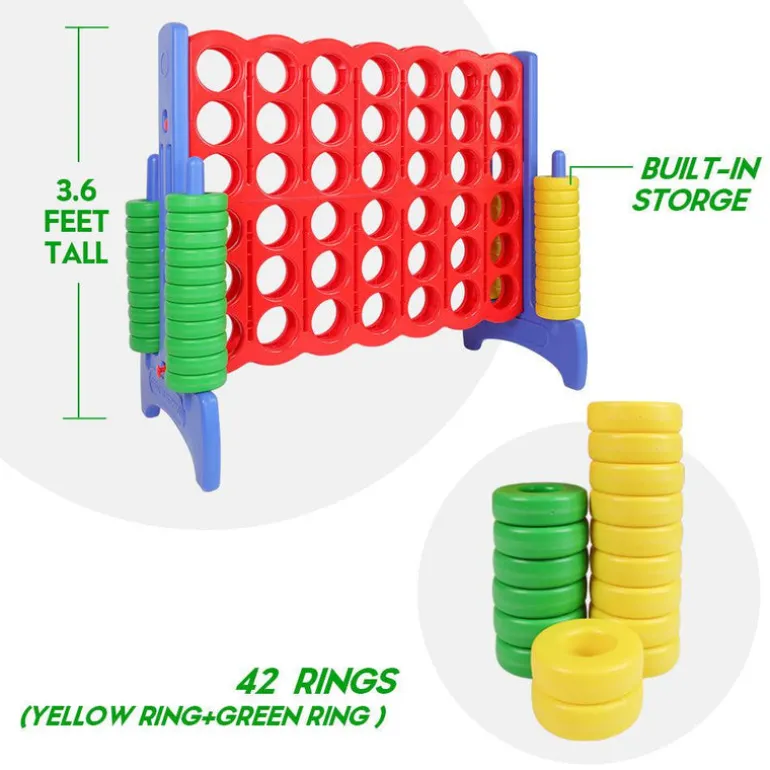 - LIGHTWEIGHT & EASY TO CARRY Our Giant Four in a Row Connect Game is made of high-quality materials and is squick and easy to assemble in less then two minutes. You can easily pack it up and bring it to family & friends, a park, a pool or more, it’s easy to take anywhere.
