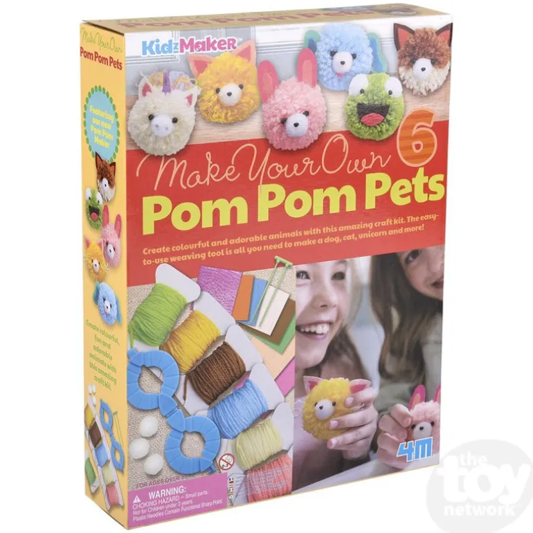 This KidzMaker – Make Your Own Pom Pom Pets includes yarn to create 6 different animals. Create more unique animals with additional yarn and the plastic template.