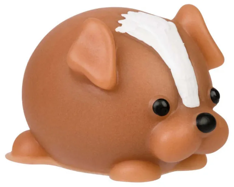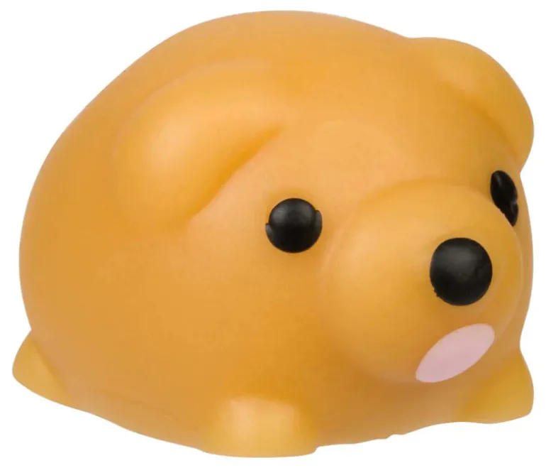 Each 1.5-inch puppy squish toy is golden brown with round features, black eyes and nose, and a tiny pink tongue. Made of nontoxic gel-like materials, each one can be squeezed, poked, and squashed for hands-on fun. Easy to clean with warm soap and water.
