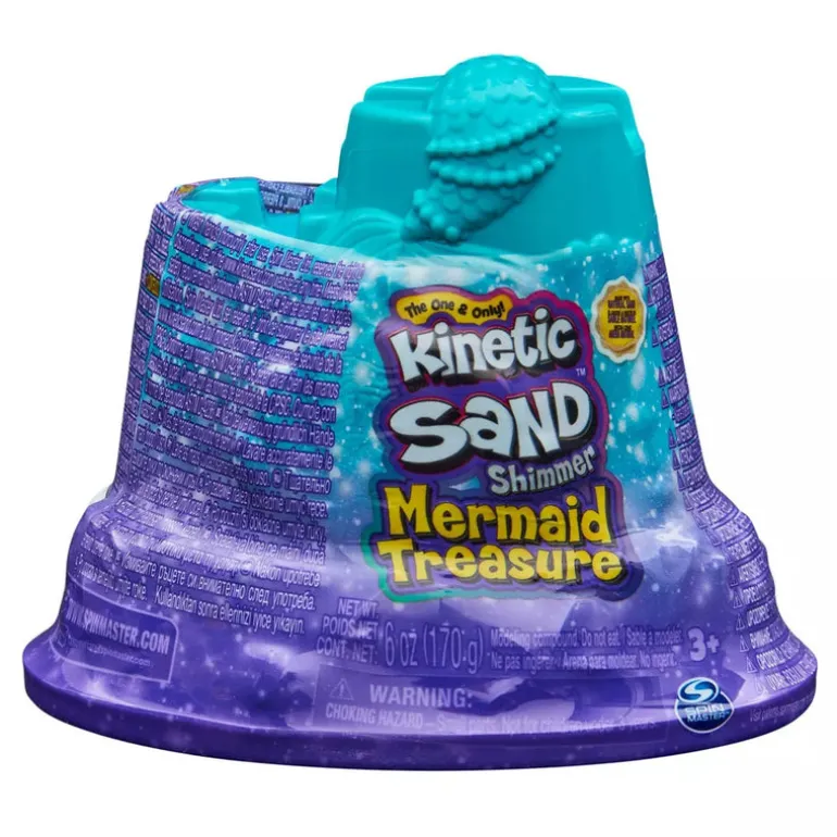 Introducing the Kinetic Sand Mermaid Treasure! Open your mermaid container to discover a shovel to dig through the sand. The castle is filled with shimmer sand, mermaid tools, and hidden gems. Use the mold to create clam shells. Can you find the rare large opal sea shell? When you`re finished playing, store your sand back into the Mermaid Treasure for easy clean-up. Kinetic Sand is the original magical, moldable and mesmerizing play sand. Better than arts and crafts modeling clay, this sensory sand never dries out, so you can play with Kinetic Sand for hours of tactile independent play. It`s a great addition to sensory bins. Let it flow through your hands Ð it`s so satisfying, you won`t be able to put it down! Kinetic Sand is made with natural sand and is non-toxic and hypoallergenic. It magically sticks together and cleans up easily. Kinetic Sand develops creative and sensory skills and allows kids to create anything they can imagine! Kinetic Sand kids toys for 3 year old boys and girls are the perfect gift for kids.