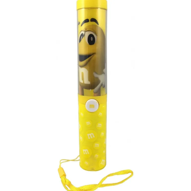 The top of the Flashlight extends up to create a longer lighted wand. M&M’S® candies are packed in the handle.
