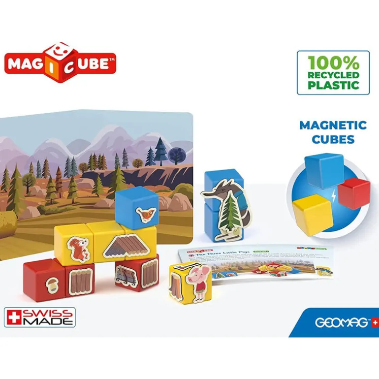 Magicube is the revolutionary platform of Geomagworld products in the Junior Construction category. This innovative building system is made up of magnetic cubes that attach to each other on all six sides. By harnessing the invisible and magical properties of magnetism, children can give free rein to their imagination as they build colourful 3D models. Just playing with a few cubes, even the youngest of children begin to develop their first manual skills. Our new Magicube Recycled collection with 100% recycled plastic has the same bright colours and high quality standards as all our original Geomag sets.